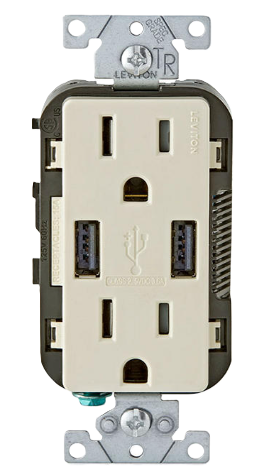 CARGADOR 2 USB TIPO A/A DE 18W 3.6A Y DÚPLEX TAMPER RESISTANT 15A - 125V~ 2P3H, ALMENDRA CLARO ID:T5632-00T