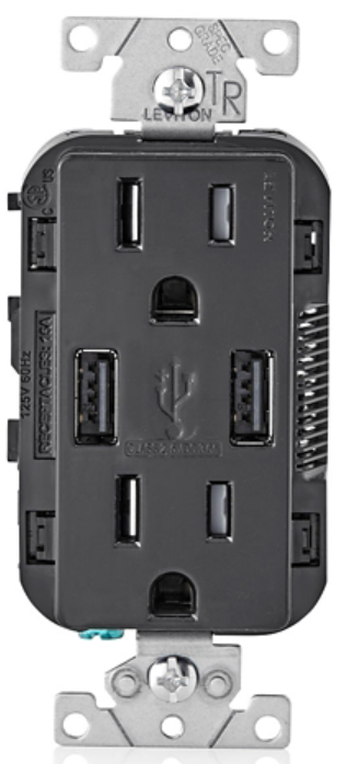 CARGADOR 2 USB TIPO A/A DE 18W 3.6A Y DÚPLEX TAMPER RESISTANT 15A - 125V~ 2P3H, NEGRO ID:T5632-00E